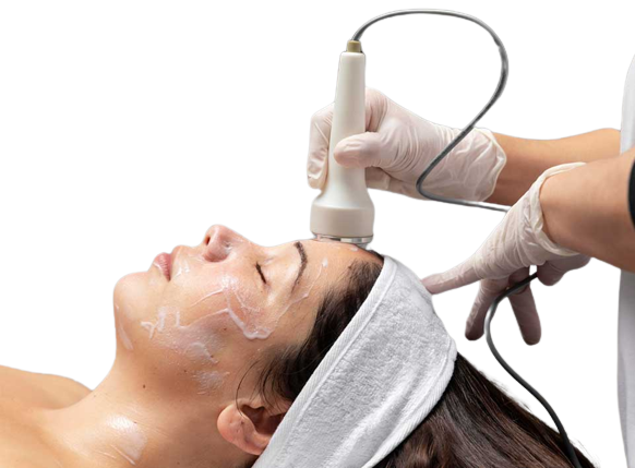 The aesthetician suffuses collagen-rich serum into the skin for hydration via a vortex fusion tool. This step helps to diminish certain skin conditions like sunburn, hyperpigmentation, fine lines, etc.